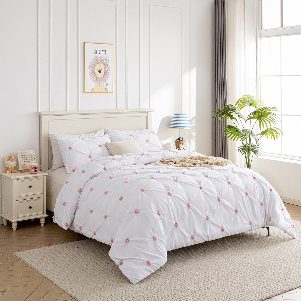 · Graceful Design: Featuring contrast Embroidered pinch pleat design, this bedding set adds an elegant and timeless touch to your bedroom decor. Its intricate pleating creates a textured look that instantly elevates the style of your space.